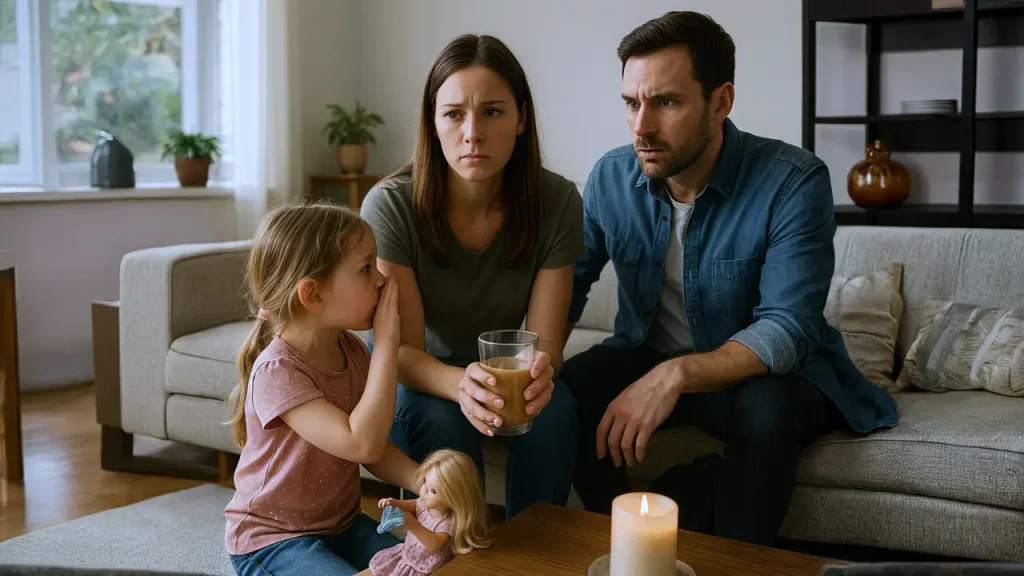 Emily grabbed her Barbie and skipped off, her ponytail bouncing, leaving a silence that settled like a heavy fog. Mike closed the door, his hands shaking, his breath uneven. Jessica set her coffee down, her fingers cold, and faced him, her heart racing. She felt exposed, vulnerable, terrified that a lie could fracture everything they’d built.
